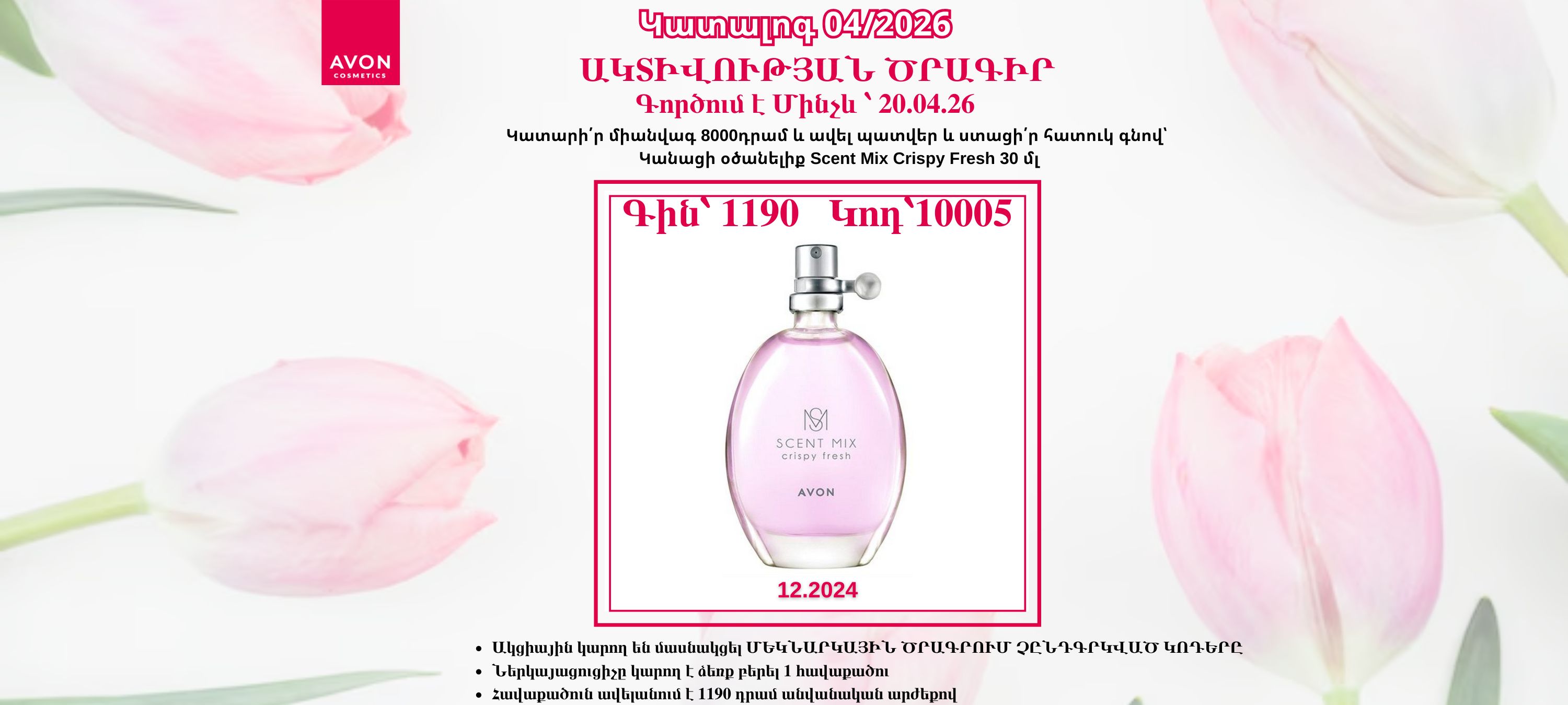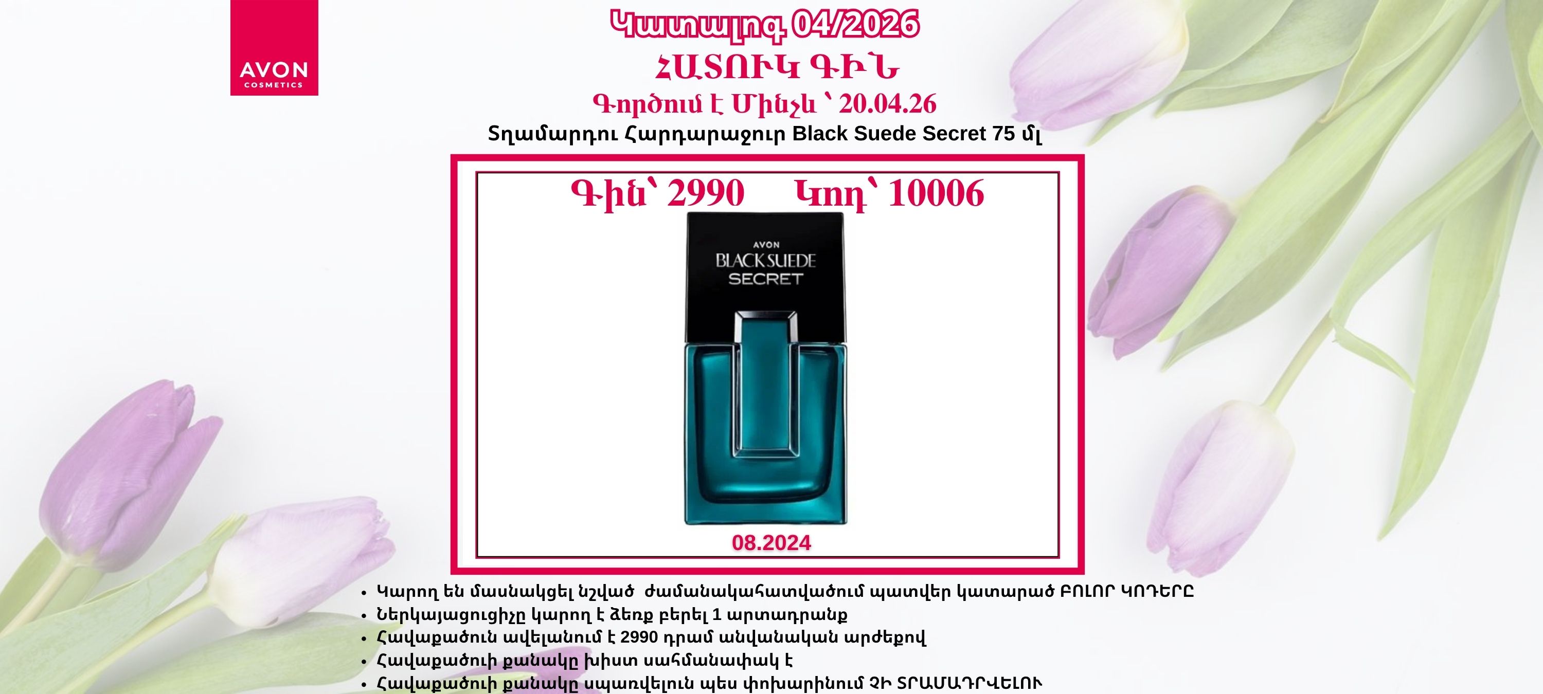 Для регистрации на сайте Вам необходимо ввести свои личные данные на армянском, а также отправить копию своего паспорта на адрес avoncosmetics.reg@gmail.com. Персональные данные хранятся в базе данных организации и не передаются другим лицам.